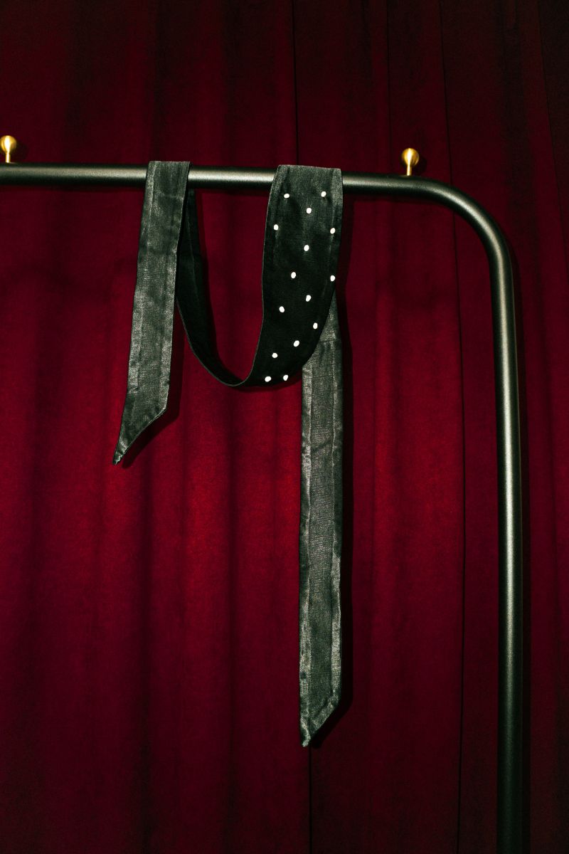 Czarny pas z perłami naturalnymi. Delikatna struktura tkaniny w połączeniu z perłami daje wyjątkowy, niepowtarzalny efekt, który podbije każdą stylizację. Zaprojektowany z myślą o spięciu w talii marynarek czy sukienek. Idealnie sprawdzi się w wieczorowych kreacjach dodając im więcej szykowności.