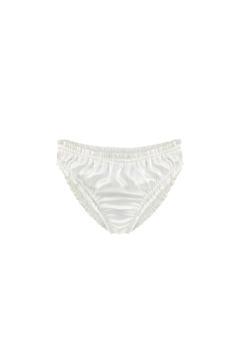Stylowe i subtelne jedwabne figi ecru Lily. W połączeniu z jedwabnym topem lub jedwabną koszulą stworzą przepiękny komplet piżamowy, a idealnie skomponują się w zestaw bielizny razem z jedwabnym biustonoszem Nancy. Delikatna gumka pozwala przyjąć bieliźnie wiele form w zależnie od upodobań i sylwetki. Nasze figi będą świetnie leżeć jako High Leg, jak również jako klasyczne figi.