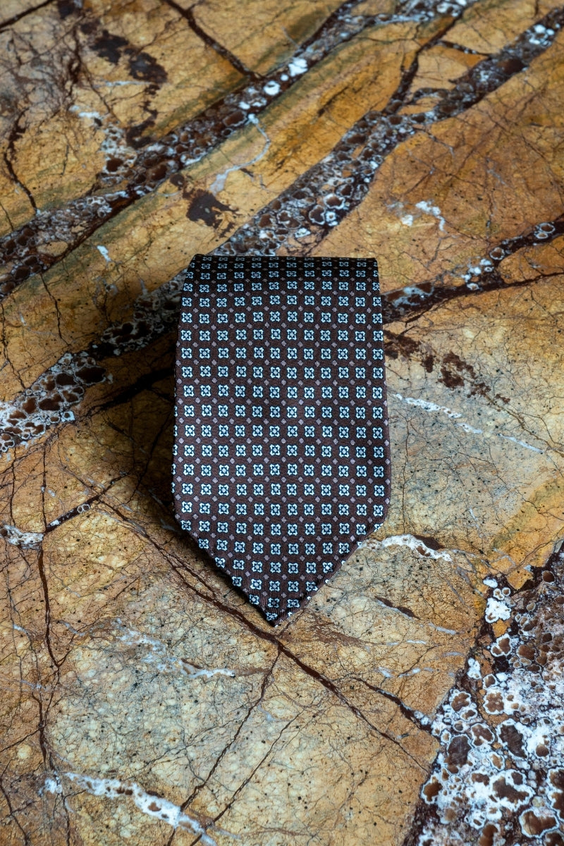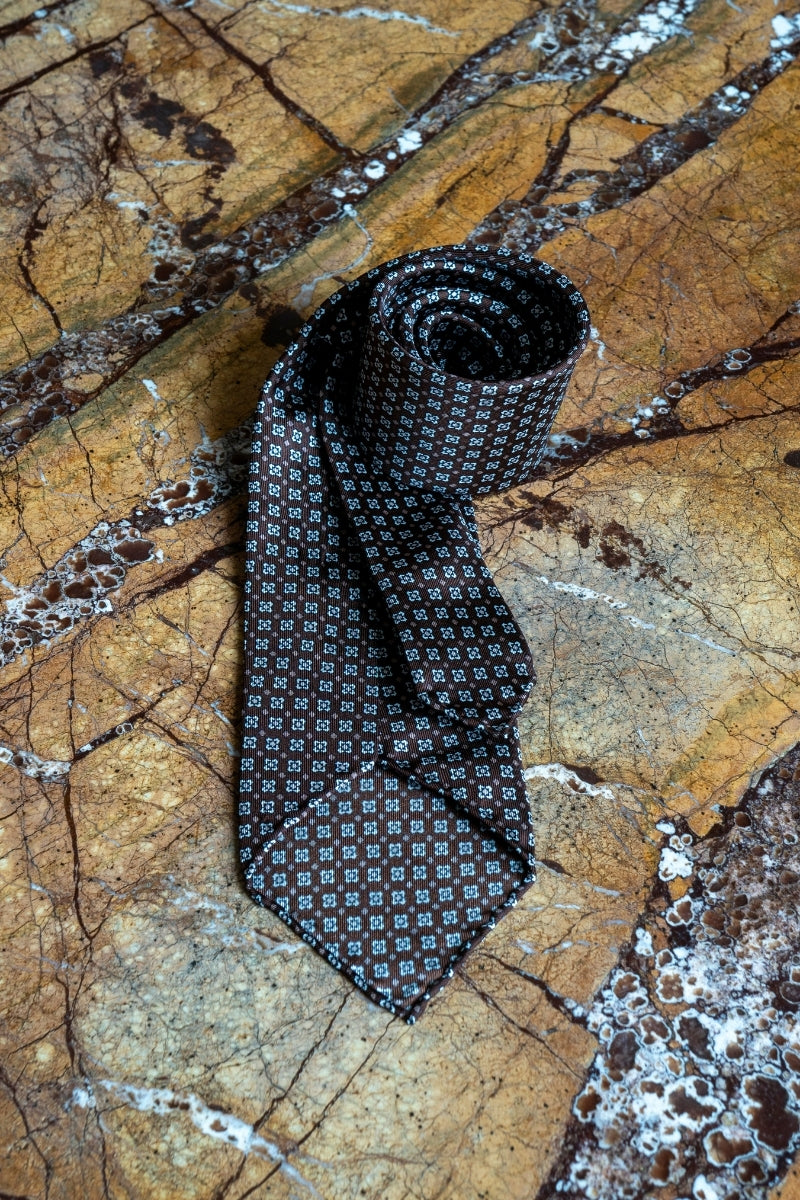 Jedwabny Brązowy Krawat we Wzory